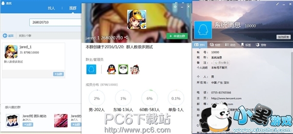 以268020709为例,群名称为“jared_1”,创建于2016/1/20日,介绍资料“群人数很多测试”,群主则是QQ号10000的“系统消息”,这些迹象都佐证了它确实是内测群。