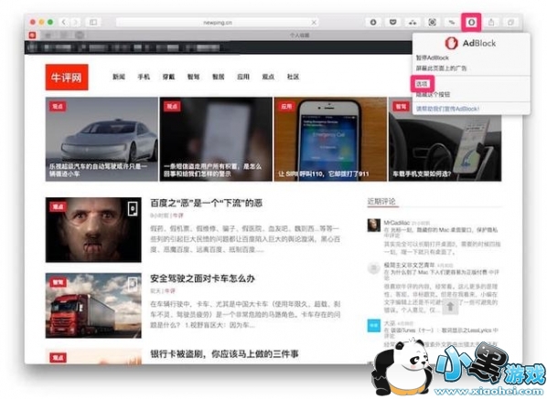 如果你使用 AdBlock ,那么在 Safari 下开启 Safari 内容屏蔽,则能有效的去除百度推广链接。点击 AdBlock 图标,选“选项”。