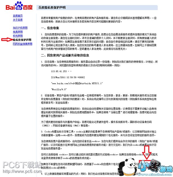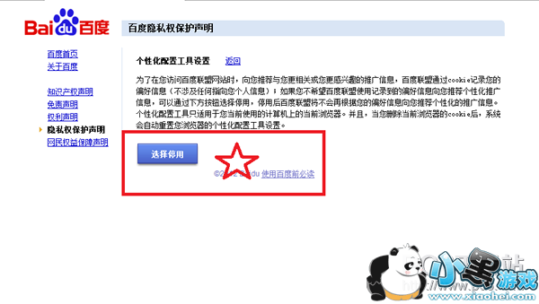 2.点开“使用百度前必读” 选择“隐私权保护声明”,往下看到蓝色小字“个性化工具”;