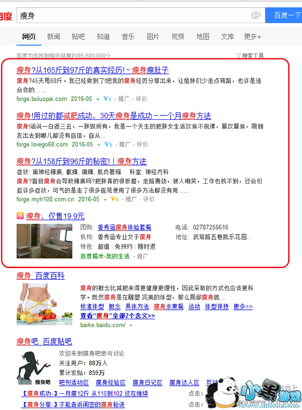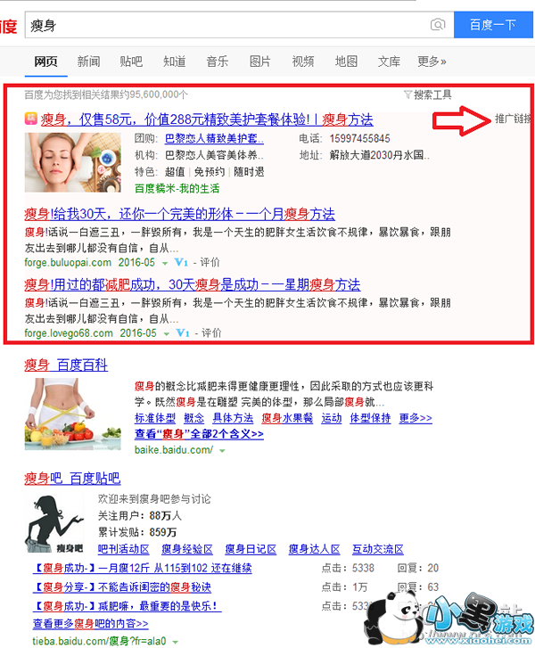 可以很明确的发现推广广告占的比重在整个页面变小了,整个推广被缩在了暗粉色的小方框内,还表明推广链接,这样对于上网的群众来说有了简单的辨识度。