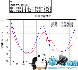 测试图标中红色线是没有加装电池的测试线!蓝色线加装电池的测试线!由图中可以看出加装电池(碳棒)以后,在DC-100MHz范围内性能获得了提升!并且在100MHz的时钟频率获得了高达2dB增益,接收端信号能量直接相对提升了58.4%(PAfter/PBefore=10^(0.2)=1.584)
