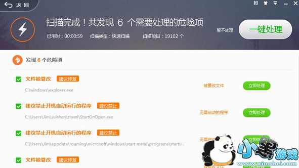 体检依然是经典的打分制,速度与前版差别不大,完成后会自动将本次检测的风险项列出,鼠标悬停可以查看,当然也能选择一键修复。不过貌似这里取消了自动体检,只能在需要时手工检一下,当然这个问题相信大多数网友也能接受。