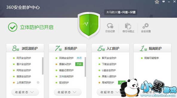 防护中心较以往条理更加清晰,分为“浏览器防护”、“系统防护”、“入口防护”和“隔离防护”四个部分。而且你可以随时在这里通过鼠标快速启闭某一模块,操作上较旧版方便了不少。