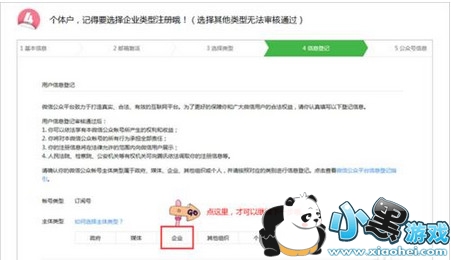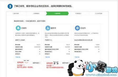 四.接下选择所需要的公众号类型,订阅号、服务号、企业号是不同的,订阅只适合于个人使用,功能有限;服务号适合于企业对外产品宣传、信息推送,客户针对性很强;企业号针对员工管理,上下渠道管理等等。要根据自己的实际情况进行选择,一旦确定将无法修改。