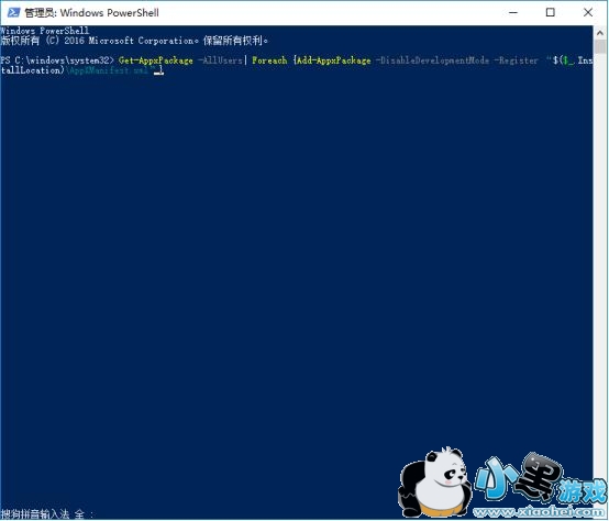 2、在powershell窗口中输入如下命令回车;