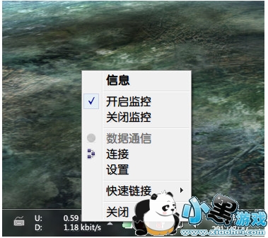 这个时候状态栏就出现了网速显示,但还有些人会发现,网速不管怎样,一直都是显示的0。这是因为你选择的网卡不对,右键单击网速显示处,然后选择“设置”。