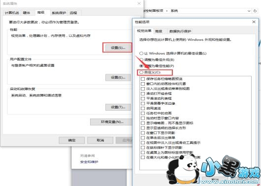 点击性能下面的设置按钮,取消勾选一些没有用的视觉特效。
