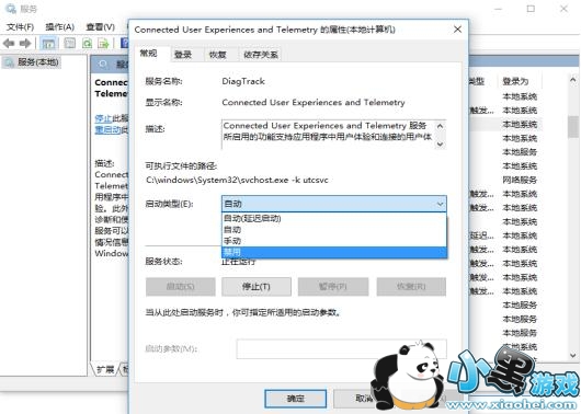找到并双击打开Connected User Experiences and Telemetry,将启动类型设置为禁用,并停止该服务。