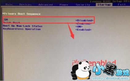 4、接着切换到startup选项,选择csm,回车改为enabled,如图所示: