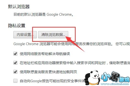 3、点击“隐私设置”下面的“清除浏览数据...”按钮。