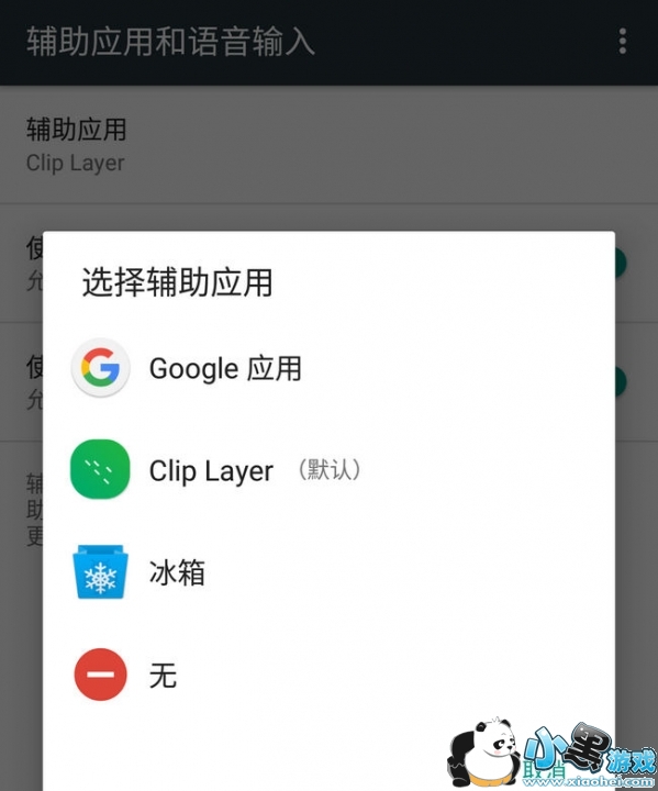 2、安装完成后打开时需要进行一个基础设置,需要将“复制应用和语音输入”中的辅助应用更改为 Clip Layer ,比如小编默认情况下长按是调用的Google 应用的“Now On Tap(屏幕搜索)”;