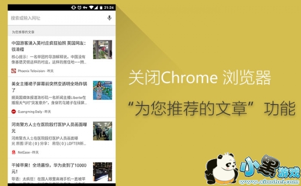 如何关闭Chrome移动版首页的推荐文章功能,Android版Chrome浏览器在最近的更新中在首页加入一个“为您推荐的文章”的功能,有些无聊,那么怎么关闭它呢?通过下面的方法可以很方便的搞定。