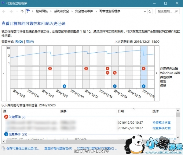 2.【可靠性监视程序】窗口中,我们就可以查看这台电脑近期的故障率以及运行情况了。