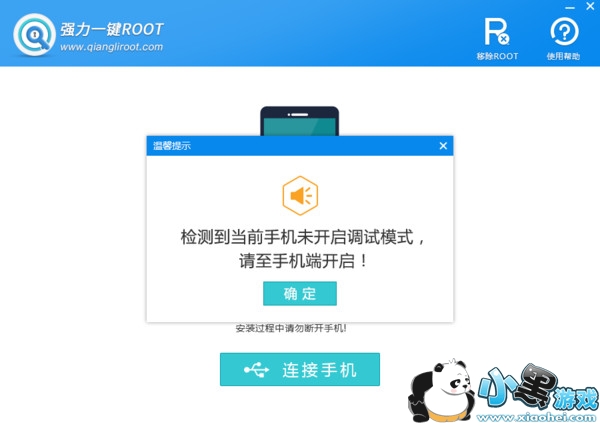 2、将需要Root的手机通过数据线连接到电脑上,同时需要开启手机的USB调试模式;