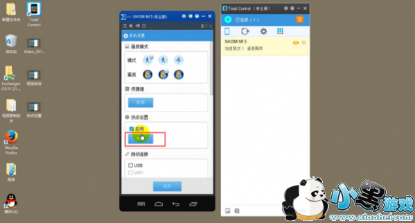(一)热点的设置 1、下载安装Total Control 手机助手软件; 2、手机连接电脑端,打开Total Control,点击[设置按钮;