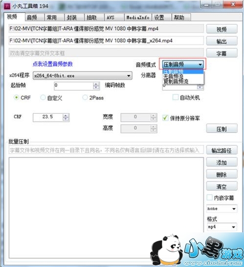 选择音频模式,要压制音频选音频压制,不压制音频选无音频流
