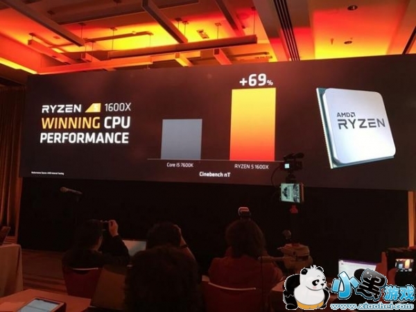 那这 Ryzen 5 处理器的性能如何呢?还是从 AMD 现场的 PPT 来看,在 Cinebench R15 nT 跑分中Ryzen 5 1600X 确实比英特尔 Core i5-7600k 性能强多了,分数超过了 69%。另一款 1600X ,AMD 没有提供具体分数。AMD 高级副总裁 Jim Anderson 表示, Ryzen 5 将为中端 PC 市场提供“惊人的性能水平”,并具有与 Ryzen 7 系列相同的颠覆性价值。