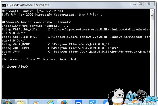 5、单击“开始”—“运行”,键入"cmd",在控制台输入service install Tomcat9,