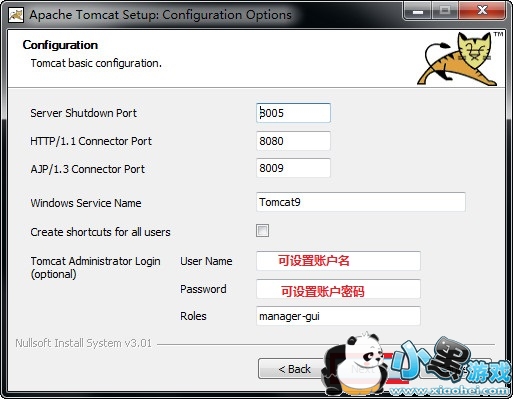 2、可以自行设置账户名以及密码