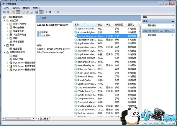 然后进入控制面板—系统和安全—管理工具—服务,找到Apache Tomcat Tomcat9服务项,右击该项,点“启动”,启动该服务,如图