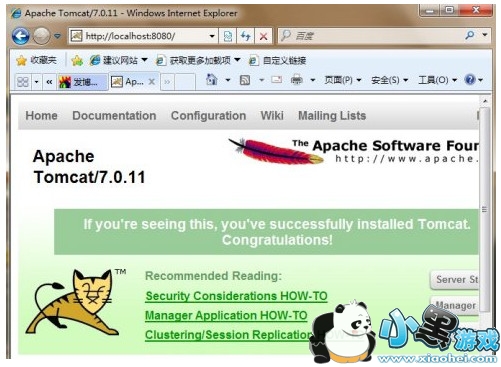 如果出现tomcat示例主页,则表示服务器安装成功,如图