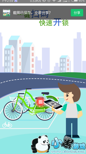 第五步:点击扫码租车,扫描单车上的二维码,即可打开锁完成租车步骤。
