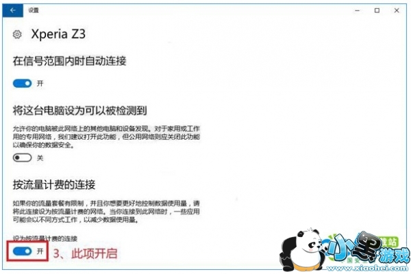 2、开启“设为按流量计费的连接”: