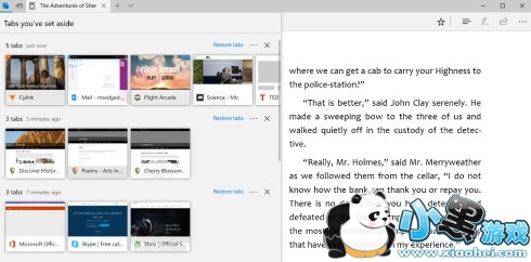 可以将您的选项卡放置一边以便于随时访问;Microsoft Edge是 Windows 应用商店中默认的图书阅读器。
