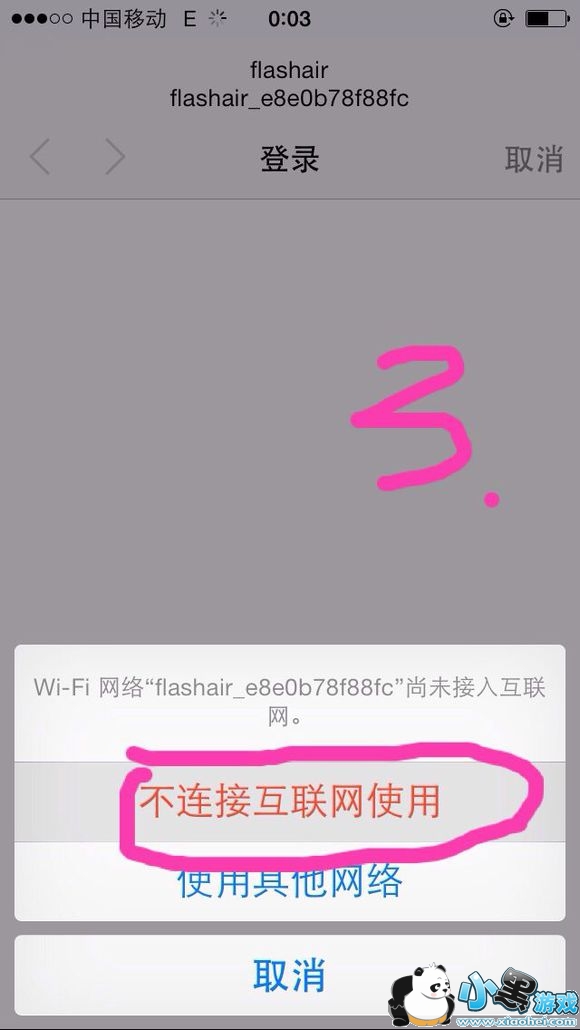iPhone用户你要在弹出的框框里点右上角的取消键,然后点不连接网络