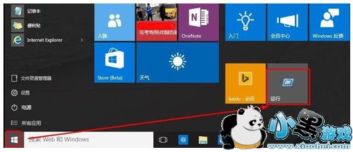 点击Win10左下角的图标,进入开始菜单,然后在下面的搜索框中,输入:运行,搜索之后,就可以快速搜索到Win10运行入口了。