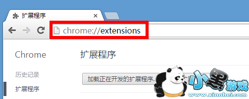 2、下载后,打开Chrome浏览器,在地址栏中输入chrome://extensions并按回车,将会打开“扩展程序”页面。