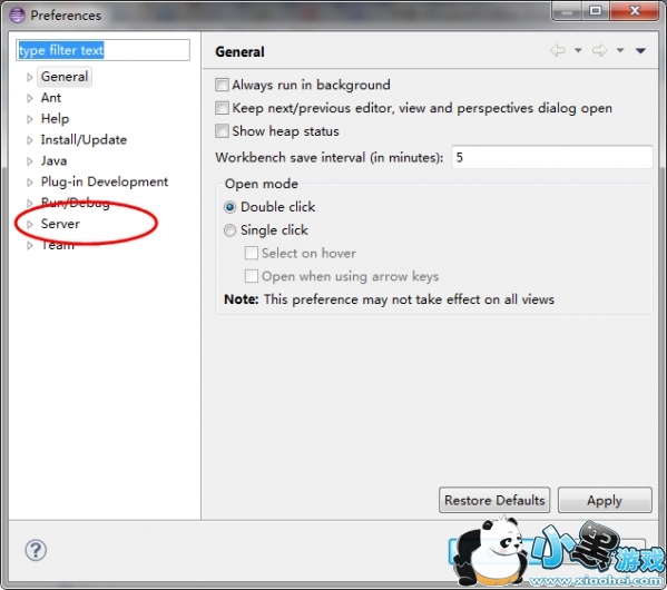 安装完成后,server选项就有了,如图