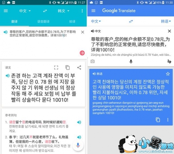 传统的文本翻译上,对于国人来说使用翻译软件大部分是抱着学习某种语言的目的。所以有道翻译官在完成基本的文字翻译后,还给出了参考例句来帮助用户认识正确的语法语境。Google 翻译作为一款更全球化的应用,提供读音标注的方式,能让使用者即使没法看懂「我爱你」三个字,也能从读音「wo ai ni」理解这个语句的意思。