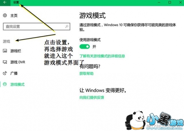 三:游戏模式,默认开启;其实这个应该就是从win7开始就有的“电源”选项下的“性能模式”。