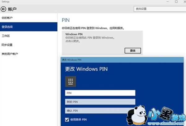 Win10的PIN码设置界面
