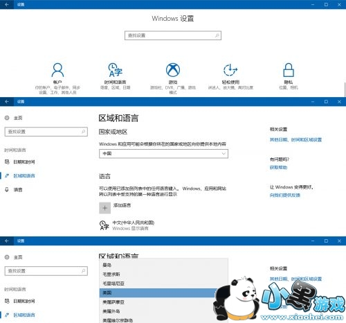 1. 进入【设置】>【时间和语言】>【区域和语言】,可通过国家和地区的下拉菜单进行设置。