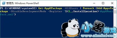 ② 针对Win10应用打不开的情况,请输入以下命令: