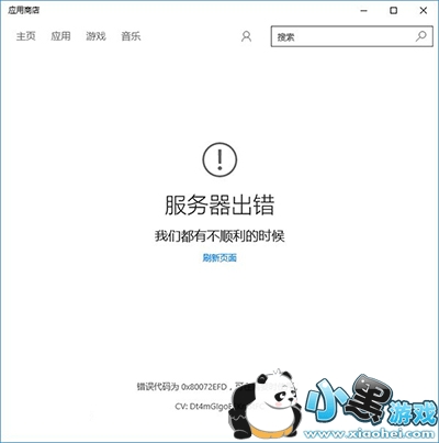 5、如果你的应用商店打开后提示“服务器出错,我们都有不顺利的时候”,错误代码为0x80072EFD,这可能是IE中的代理设置导致。