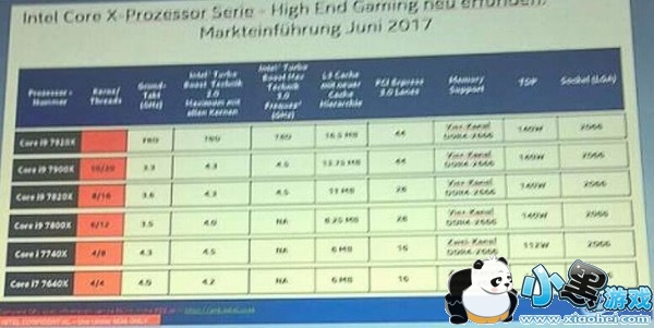 从上述来看,除了最顶级的Core i9-7920X,其余三款i9处理器都将在6月露面。