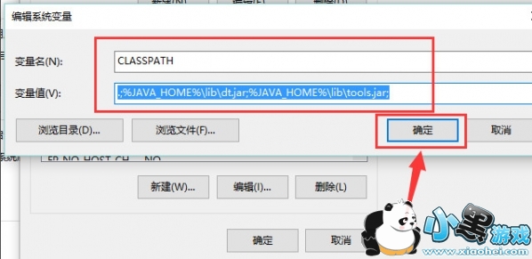 六、在系统变量区域,选择“新建”,输入变量名“CLASSPATH”;变量值:“.;%JAVA_HOME%/lib/dt.jar;%JAVA_HOME%/lib/tools.jar;”。请注意变量值中,前面的“点“和”分号”,可以直接复制此变量值。然后点击“确定”。