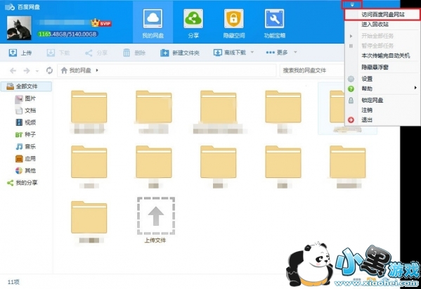 - 2、点击右上角【设置】按钮,点击进入【百度网盘网站】;