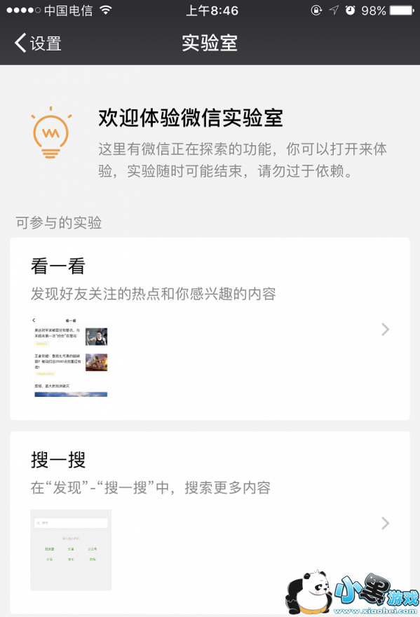 微信实验室是以一个探索姿态呈现在用户朋友们的功能,通俗表达就是,微信实验室是把一些微信正在探索的功能,让用户自主选择是否使用的实验室,实验室内有许许多多正在测试还未正式上线的功能,好奇的朋友可以提前打开进行使用。