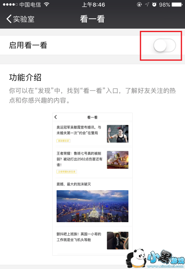 - 5、即可在【发现】界面开启看一看功能;