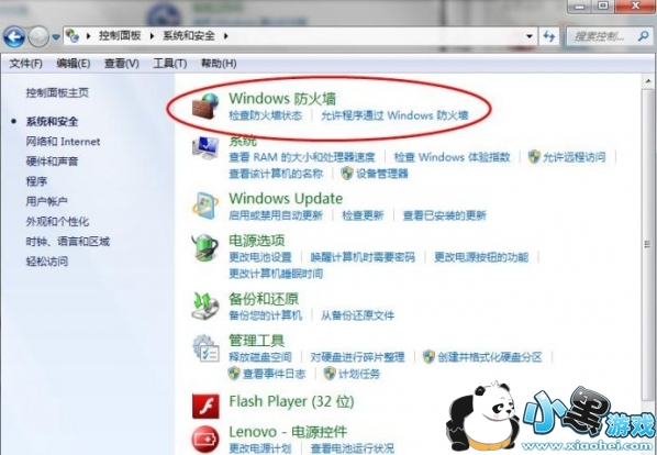在“系统和安全”页面,找到“Windows 防火墙” 单机击打开。
