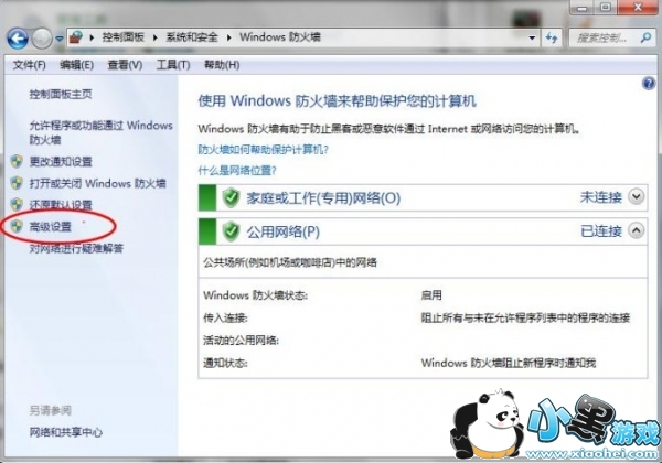 在“Windows 防火墙”页面左侧找到“高级设置”单机打开。