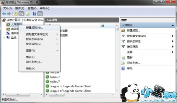 在“高级安全 windows 防火墙”页面 左侧 找到 “入站规则”右键点击“新建规则”。