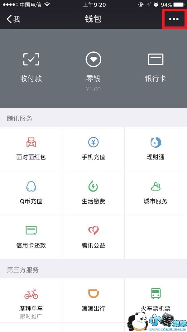 ⒌返回到【钱包】页面,点击右上角的【···】按钮;
