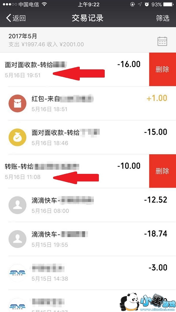 ⒏将不希望显示的记录【从←右←往←左】滑动删除即可。
