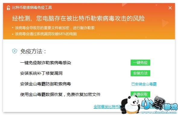 面对肆虐的Onion、WNCRY两类勒索病毒变种在全国范围内出现爆发的情况,金山毒霸中心已紧急发布比特币勒索病毒免疫工具及应急处置方案。