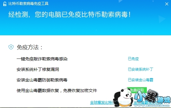 检测当前电脑是否有免疫比特币勒索病毒攻击